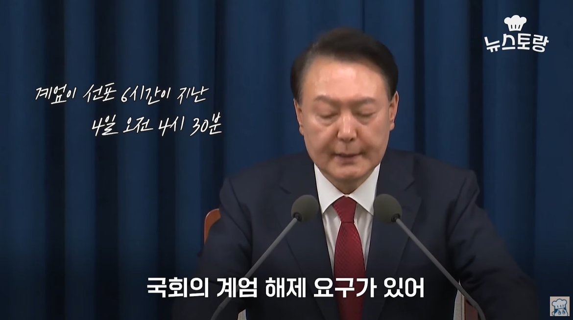 4시 27분. 윤석열 "비상계엄 선포 해제"