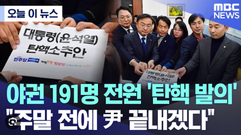 헌법 제65조 및 국회법 제130조의 규정에 의하여 대통령 윤석열의 탄핵을 소추한다.