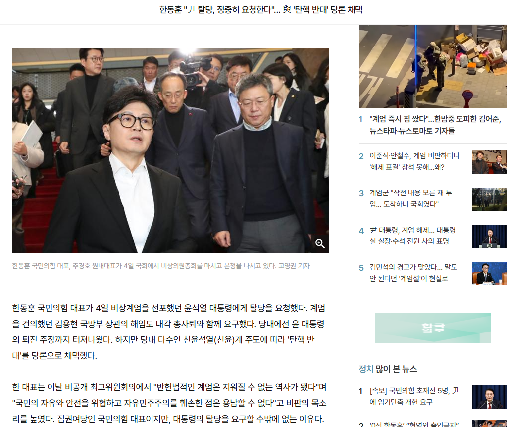 한동훈의 판단은 어리석다. 모든 해외 언론들과 미국 정가에서는 윤석열은 이미 끝났다고 보고 있다. 윤석열은 한동훈이 탈당하라고 해서 탈당하지 않는다.