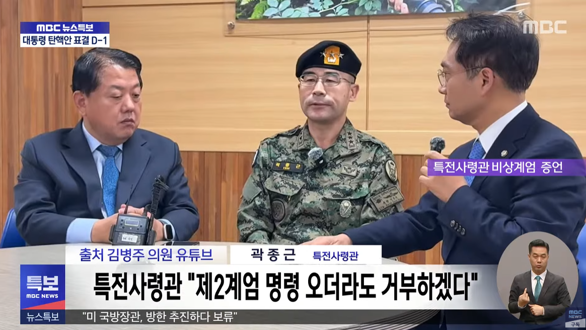 윤석열과 김용현 국방장관을 제외하고, 군 장성들 반성문 제출중임. 국회 현장 지휘관들, 윤석열의 위헌적 계엄선포에 동조했던 곽종근 (특수전사령관), 이진우 (수방사령관) 등이 민주당 의원들의 유튜브에 나와 '반성 인터뷰'를 하는 중임.