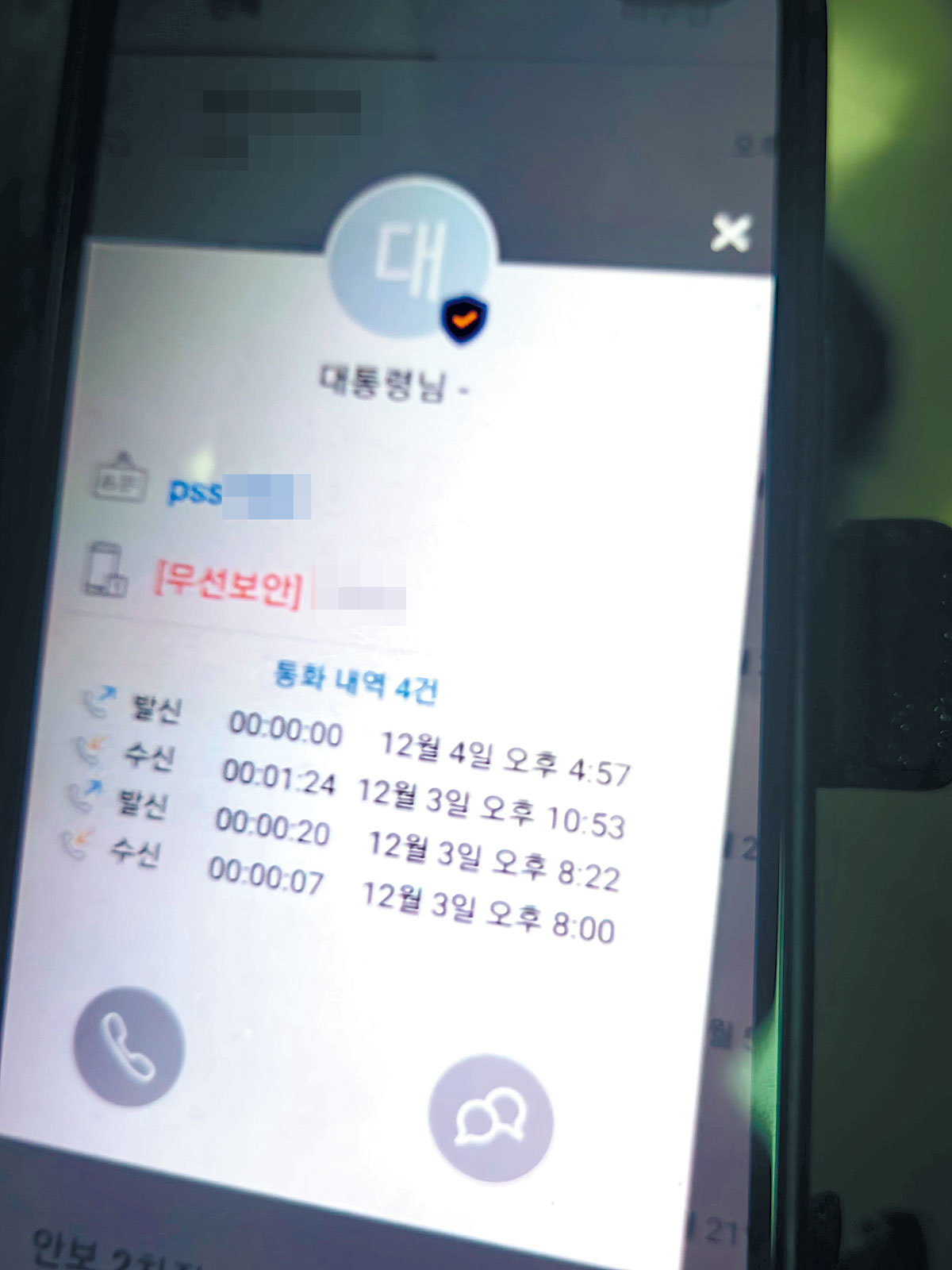 대통령이 안보폰으로 걸었고 홍 차장도 안보폰으로 받았다고 한다.