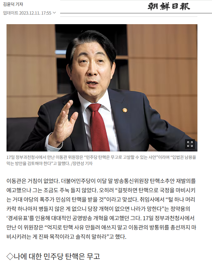 작년 이동관 (방송통신위원장)이 2023년 11월 20일