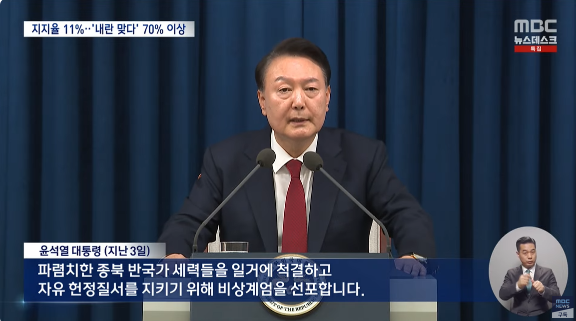 비상계엄 선포는 반국가적 내란행위다 71% 공감