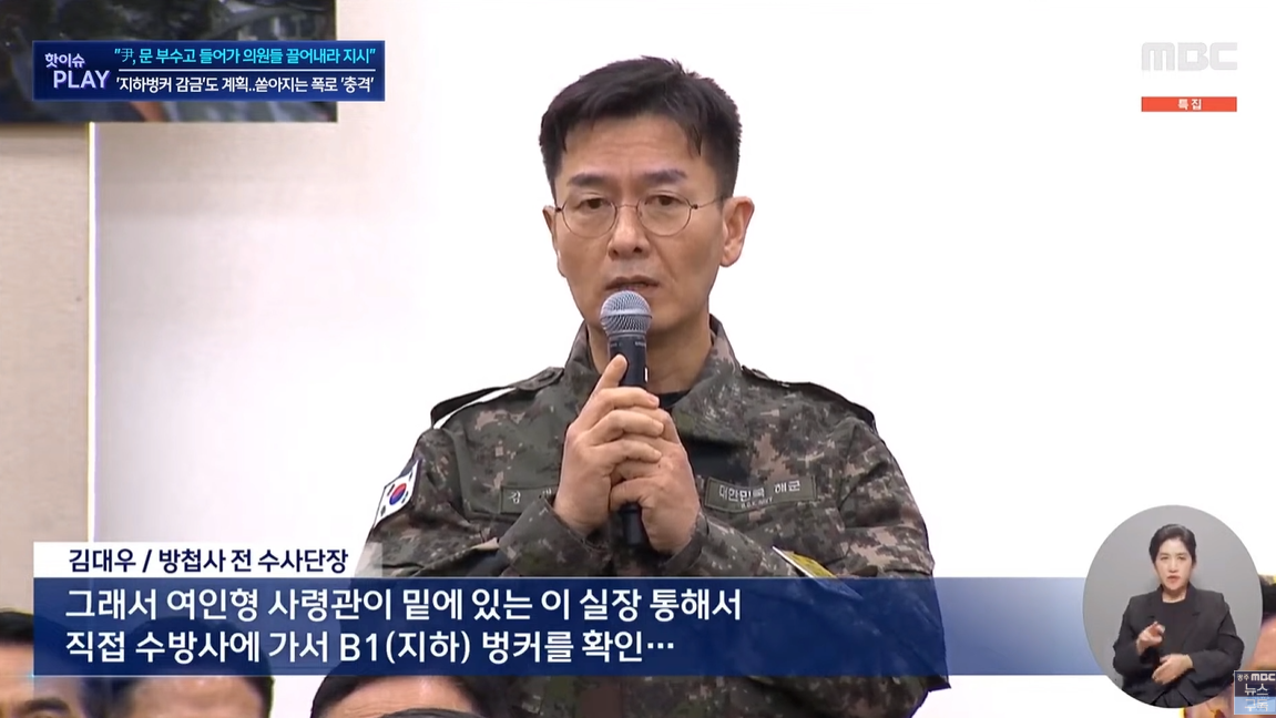 "처음 지시받기로는 B1(지하) 벙커 안에 구금할 수 있는 시설이 있는지 확인하라고 지시를 했고, 그래서 여인형 사령관이 밑에 있는 이 실장 통해서 직접 수방사에 가서 B1(지하) 벙커를 확인…"