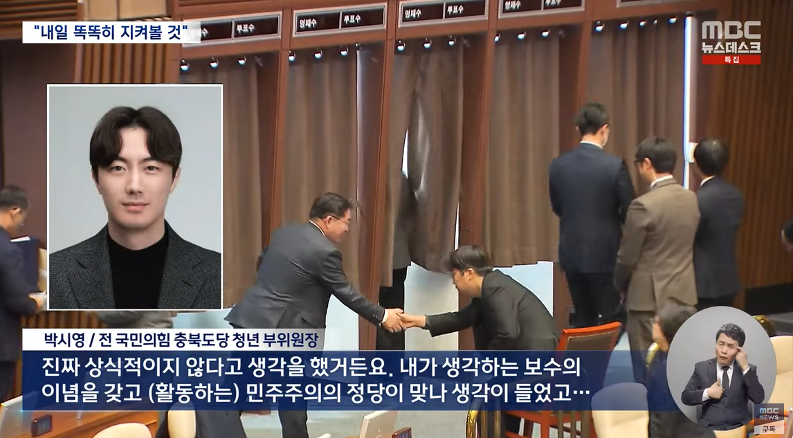 국민의힘 청년 당원의 탈당 선언. (박시영) 진짜 상식적이지 않다고 생각한다. 내가 생각하는 보수의 이념을 갖고 활동하는 민주주의 정당이 맞나 생각이 들었다.