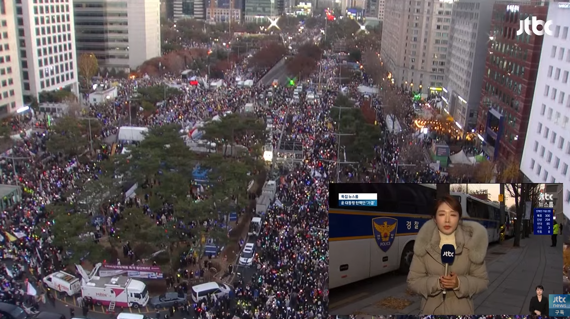 (사진 설명. 윤석열은1212 담화에서, 탄핵찬성자들과 시위자들을 '광란의 칼춤' 추는 사람이라고 비난했다. 광란의 칼춤 추러 왔어요. 근데 손에 응원봉 아니예요? 문제가 될까요? 라고 윤석열을 비판하고 있는 청년들)