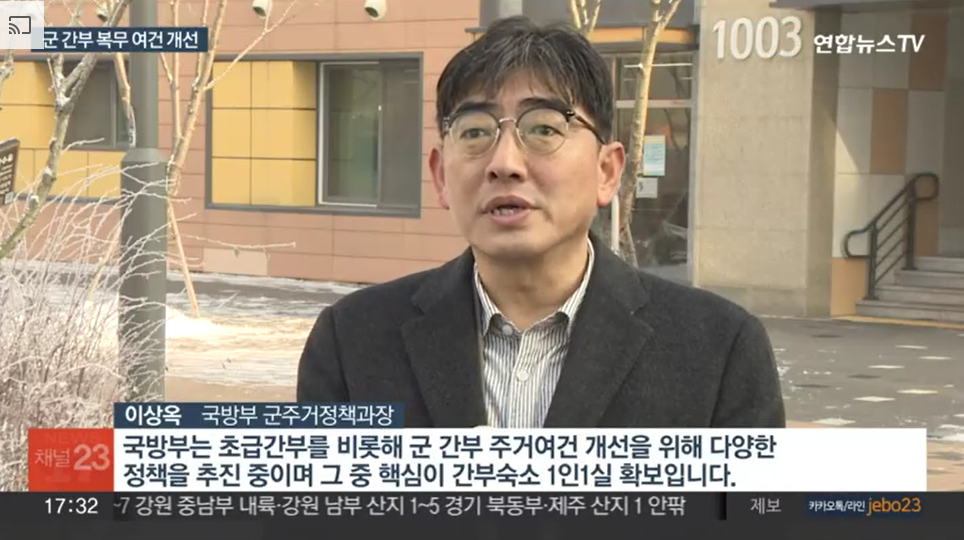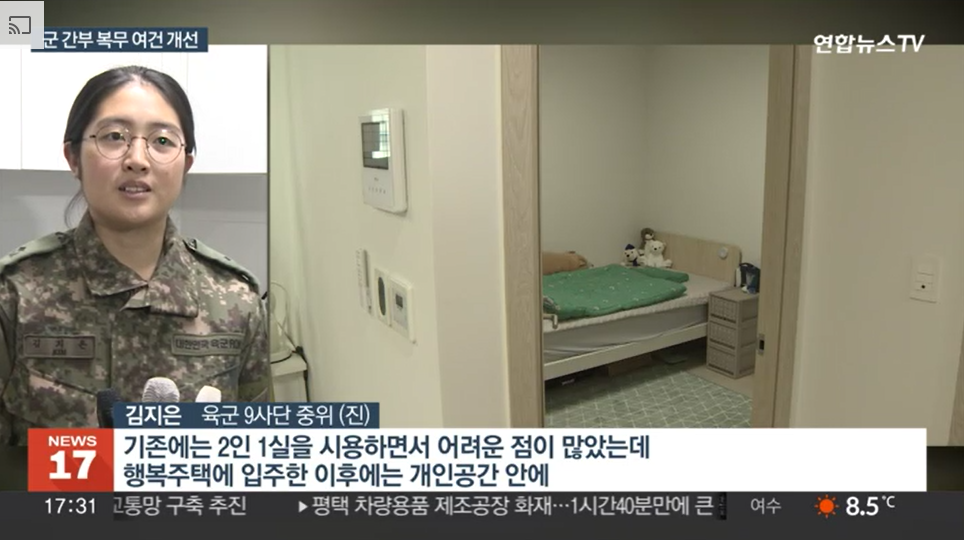 <이상옥 / 국방부 군주거정책과장> "국방부는 초급간부를 비롯해 군 간부 주거 여건 개선을 위해 다양한 정책을 추진 중이며 그 중 핵심이 간부 숙소 1인 1실 확보입니다."