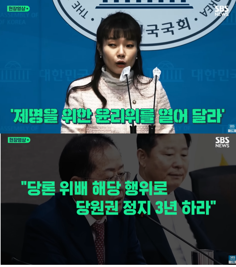 홍준표는 김예지 의원에게 탈당하거나, 당이 징계를 해서, 의원직을 박탈하자고 주장한다.