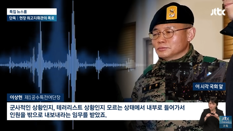 [단독] 1공수여단장 "국회 인원 내보내라 지시 받아…실탄 챙겼지만 지급 안 해" | JTBC 뉴스