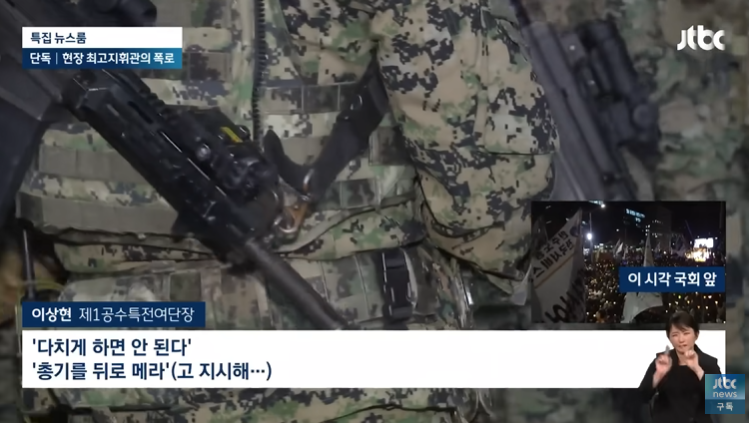 [앵커] 계엄 사태에 동원된 군인들이 윤석열 대통령에게 등을 돌리면서 내부 고발이 잇따르고 있습니다. 그 중 한 명을 저희가 실명 인터뷰했습니다. 국회에 투입된 제1공수특전여단의 현장 최