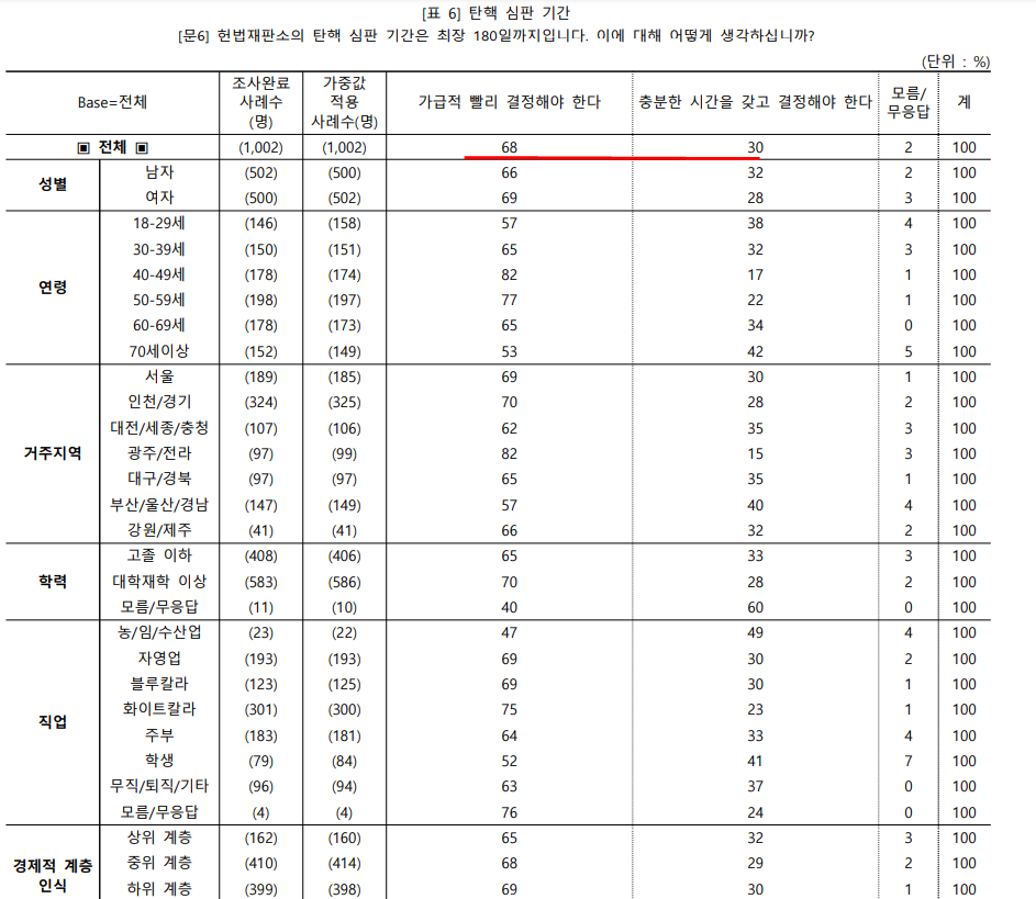 서울 윤석열 파면 71%, 탄핵 기각 24%