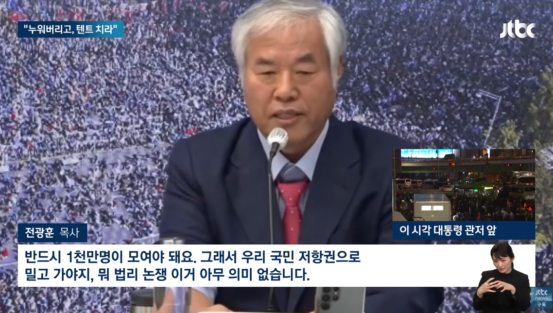 [전광훈/목사 : 반드시 1천만명이 모여야 돼요. 그래서 우리 국민 저항권으로 밀고 가야지, 뭐 법리 논쟁 이거 아무 의미 없습니다.]