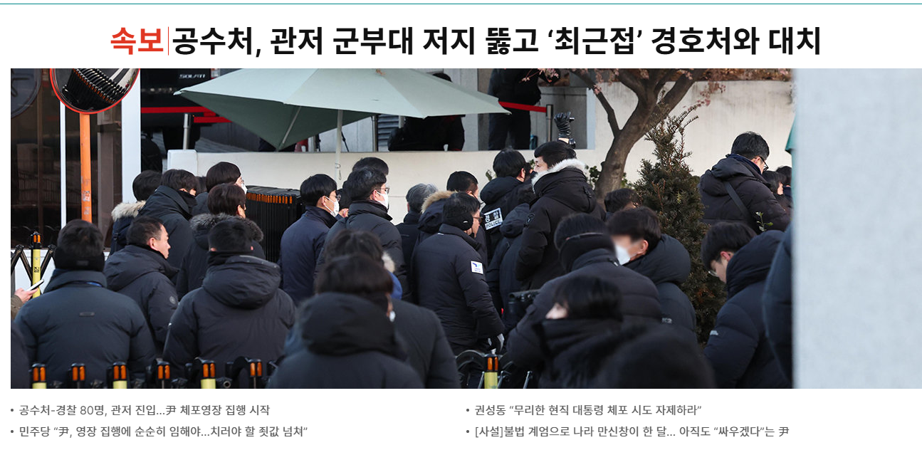 윤석열과 경호처장 박종준이 공수처 체포영장을 거부하고 있다. '비겁한 윤석열' 그대로이다.