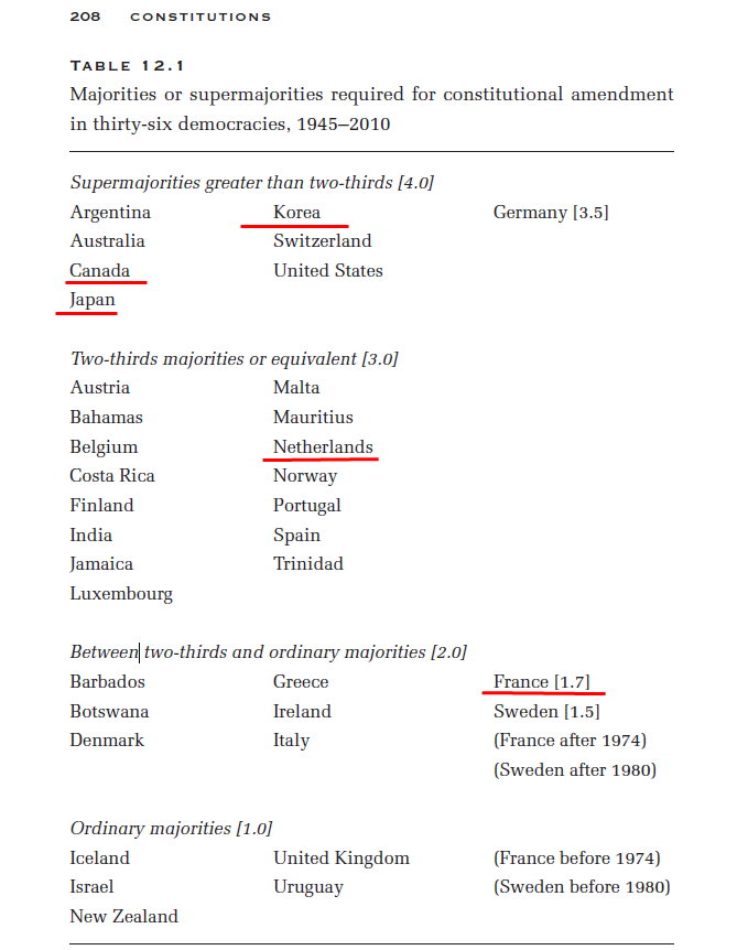 Arend Lijphart, Patterns of Democracy, Chapter 12,Constitutions: Amendment Procedures and Judicial Review, 1999 , p.208