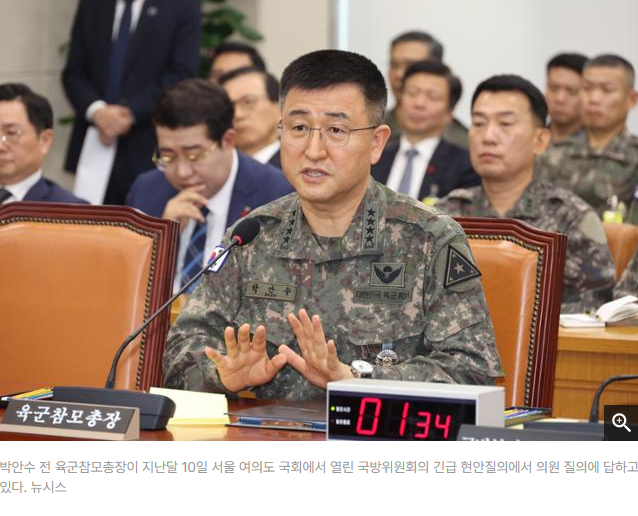 박안수 전 육군참모총장이 지난달 10일 서울 여의도 국회에서 열린 국방위원회의 긴급 현안질의에서 의원 질의에 답하고 있다. 뉴시스
