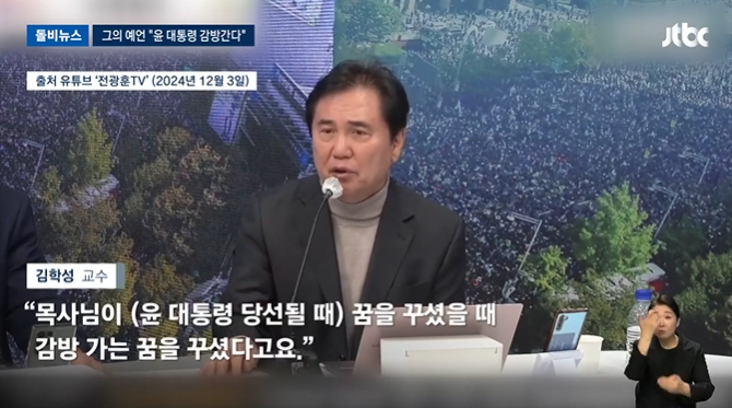 [김학성/교수 : 목사님이 (윤 대통령 당선될 때) 꿈을 꾸셨을 때 감방 가는 꿈을 꾸셨다고요.]