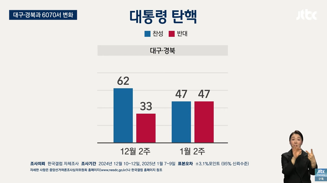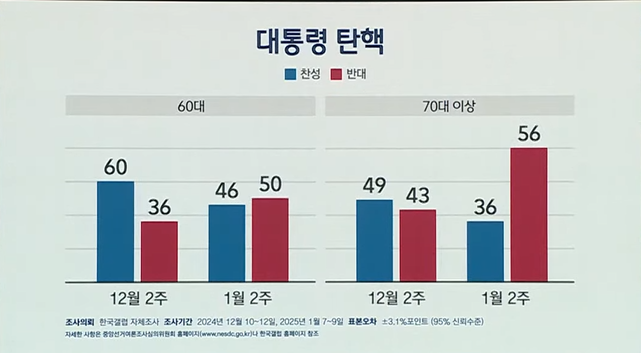 특히 70대 이상은 탄핵 반대 43%였는데 이번엔 56%으로 크게 늘었습니다.