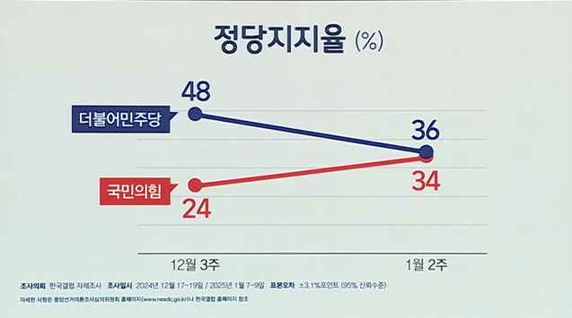 12·3 내란 사태가 터지고 한 달 남짓 지났는데 민주당이 비상계엄이 문제라고 생각하는 여론을 흡수하지 못하고 있는 것으로 보입니다.