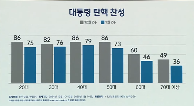 모든 세대에서 탄핵 찬성 여론은 줄어든 것으로 나타났습니다.