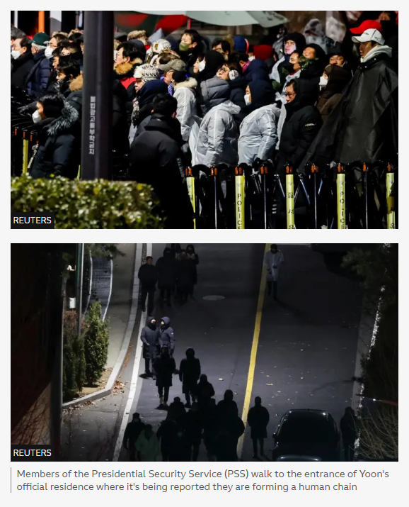 Colleagues of ours have been looking at a live broadcast of the scenes outside President Yoon's official residence.