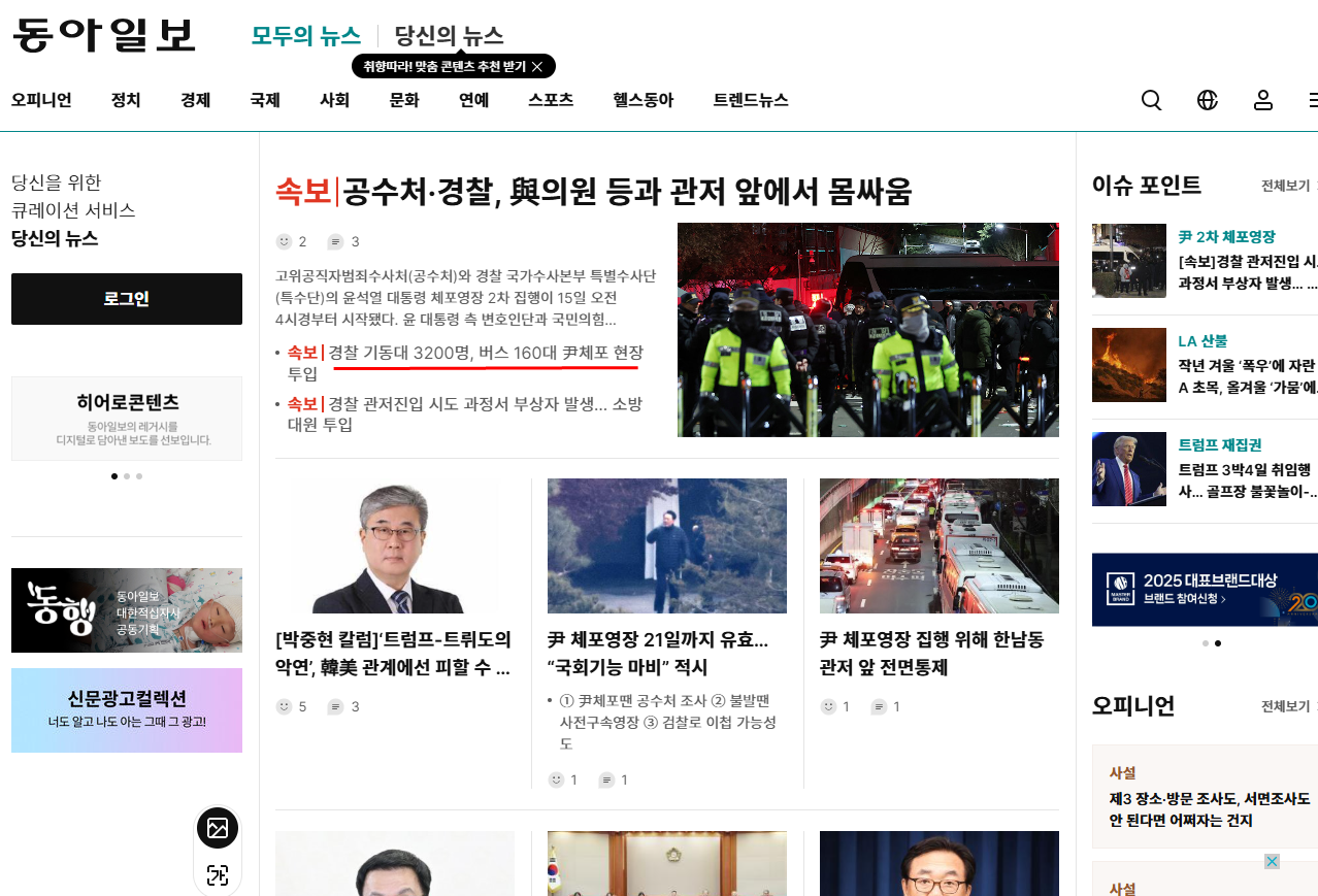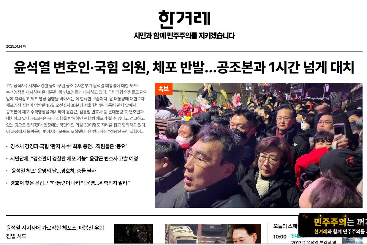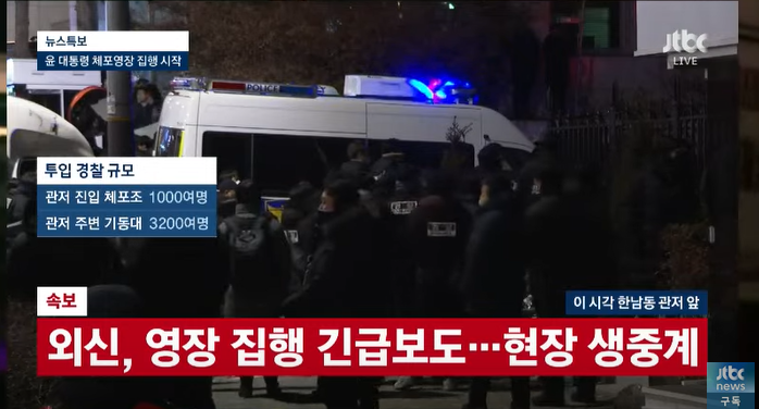 공수처와 경찰이 윤석열을 체포하러 용산 대통령실로 갔다.