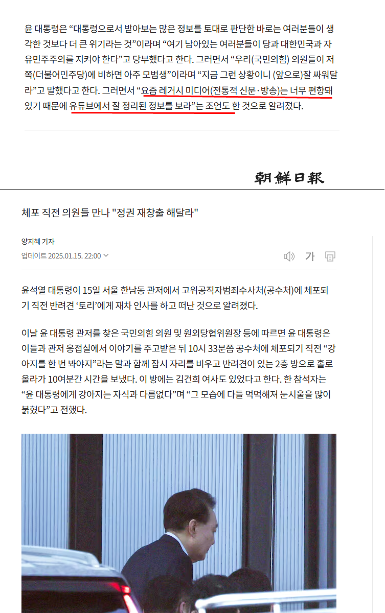 윤석열의 어리석음은, 정치적 패배를 인정할 줄 모른다는 것도 있다. 내란죄인으로 체포되어 가면서도, 자기를 비판한 동아일보, jtbc, 한국일보 등 이런 중도언론도 편향적인 '레거시' 미디어라고 욕했다. 윤석열 자신이 '옳다'고 주장하는 것이다.