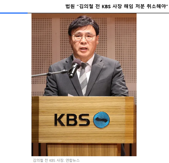 윤석열이 부당하게 축출한 kbs 김의철 전 사장, 법원 해임 처분 취소해야 한다 판결. KBS의 정치적 독립성 보장해야 한다. 대통령이 사장 임명하는 것을 바꿔야 한다. 특정 정부의 kbs 방송장악 시도 악순환을 끊어야 한다.