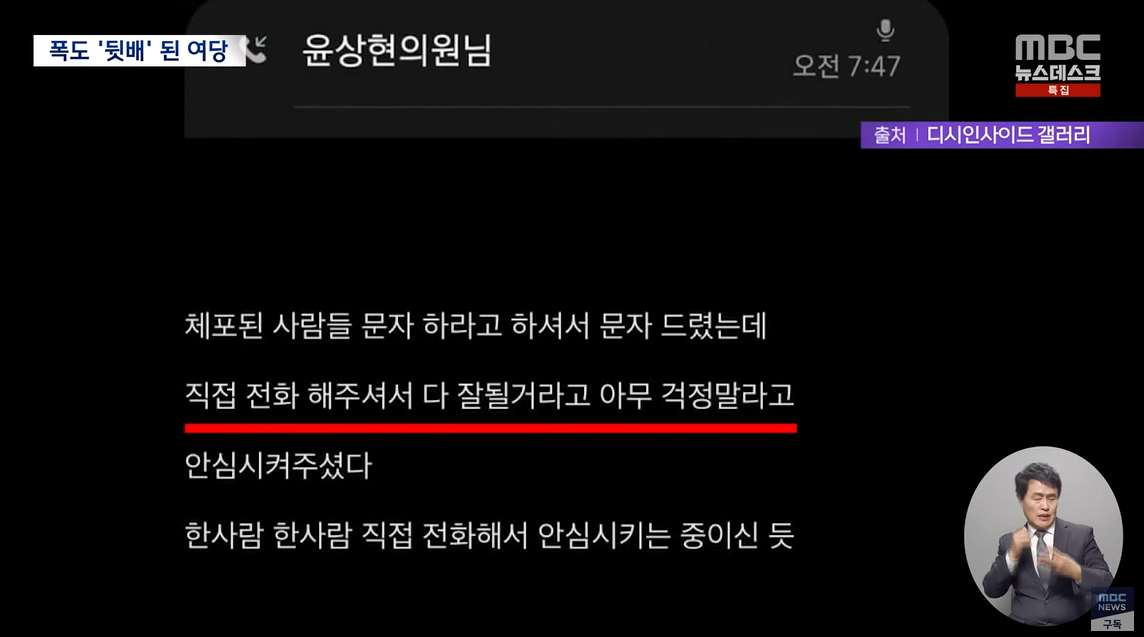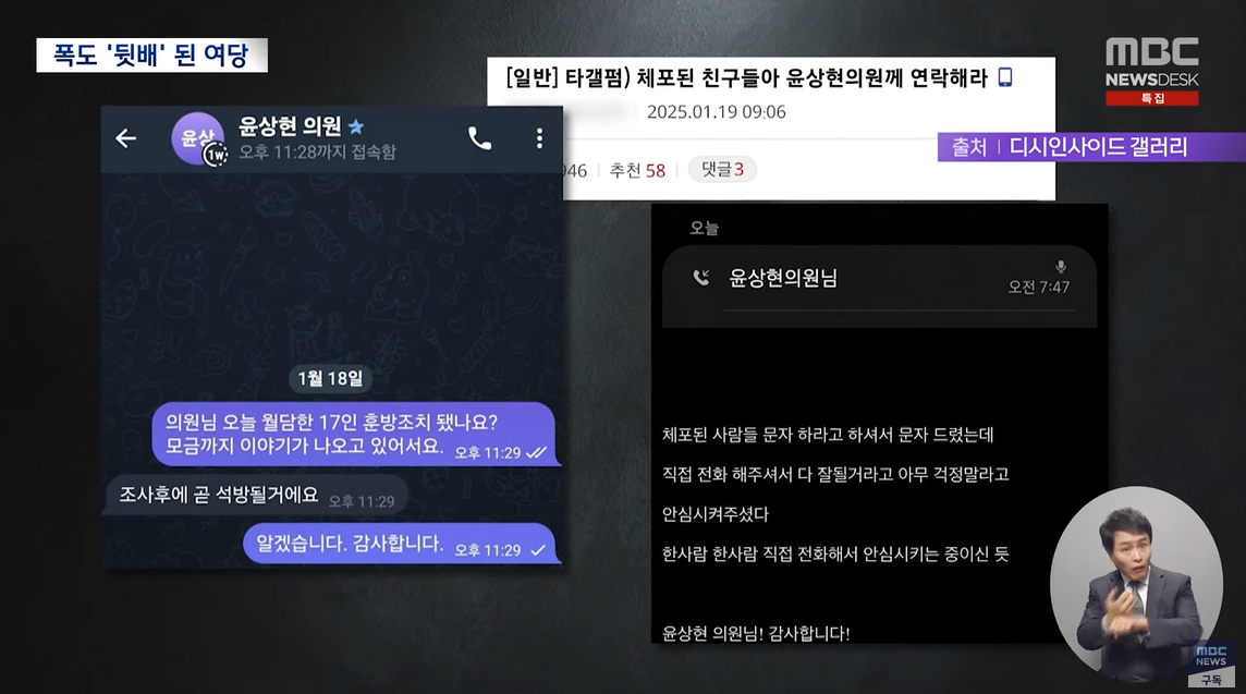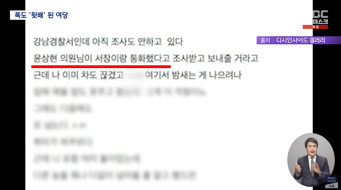 "윤 의원님이 경찰서장과 통화했다" "체포됐는데 윤 의원이 전화로 '다 잘 될거다, 아무 걱정말라' 했다" "체포되면 윤 의원에게 연락하라"는 글이 쏟아졌습니다.