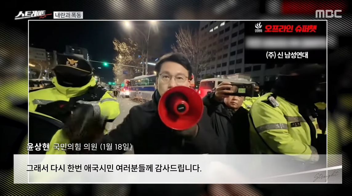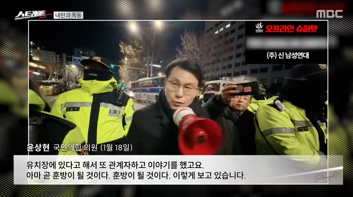 여당이 공식적으로는 이번 사태와 거리를 두는 듯 보이지만, 사실 오늘 새벽 폭도들이 난동을 부린 바로 그 자리에, 여당 의원이 있었습니다. 바로 국민의힘 윤상현 의원인...