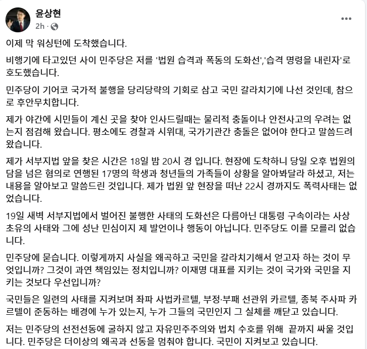 윤상현 국민의힘 의원의 폭동 선동은 반드시 처벌되어야 한다.