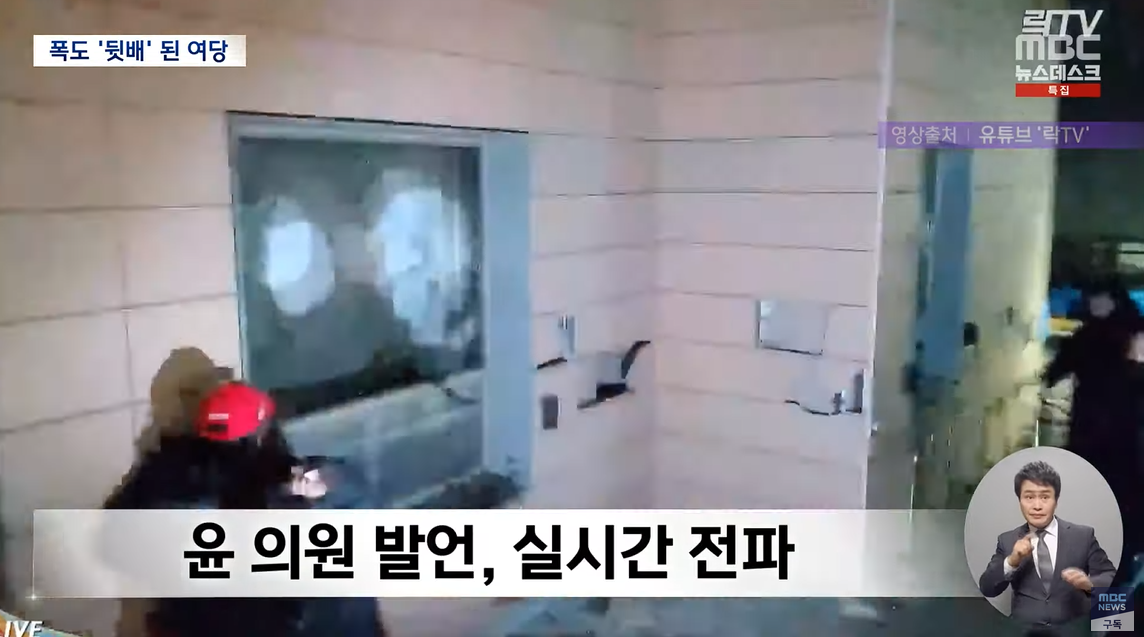 윤 의원은 담장을 넘다가 체포된 이들에게 "곧 훈방이 될 것"이라면서 안심시켰고, 그 이후 시위대가 폭동을 일으켰습니다.