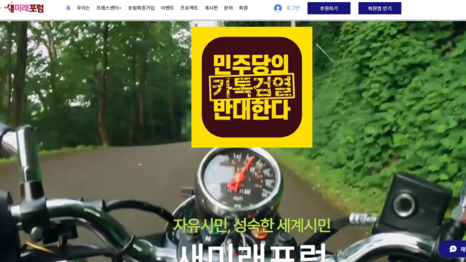 새미래포럼 (우익단체)이 '민주당의 카톡검열 반대한다고, 홈페이지 1면에 내걸었다. 2016년 박근혜탄핵과 2024년 윤석열 탄핵과정은 다르다. 정치권 뿐만 아니라, 시민사회 곳곳에서 진영간의 대결양상이고, 이것을 너무 쉽게 '내란' '내전'이라고 말할 필요는 없다. 이미 오래전부터 지속적인 '저강도' 전쟁이 일상에서 벌어지고 있었기 때문이다.