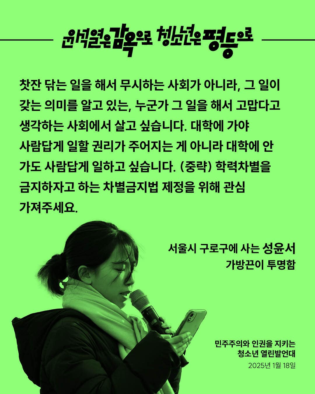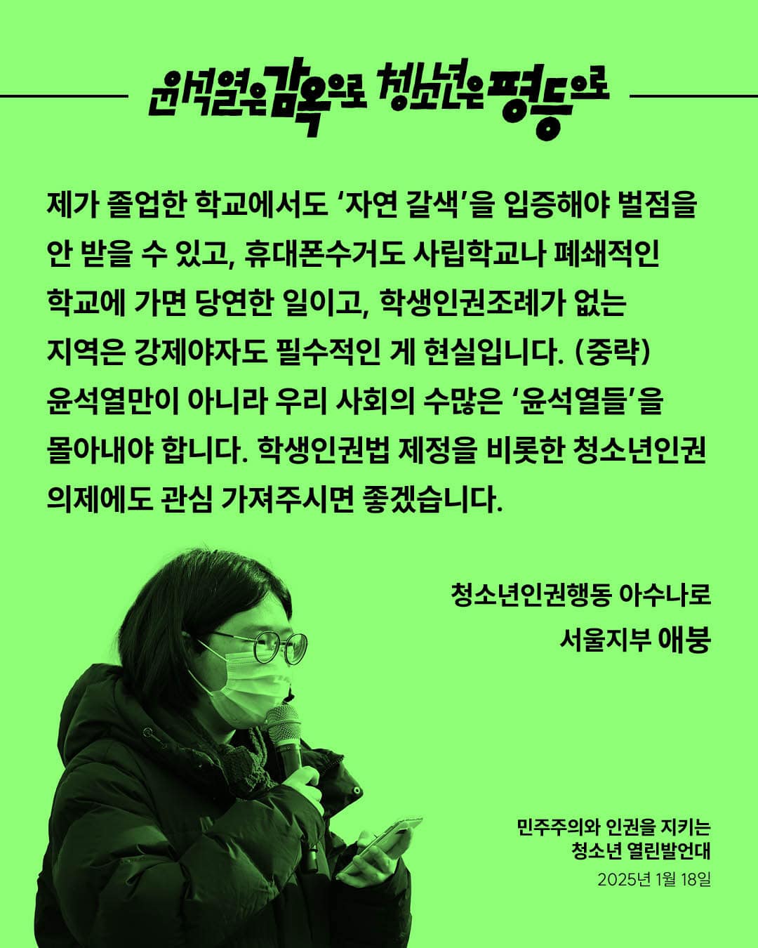 윤석열은 감옥으로, 청소년은 평등으로
