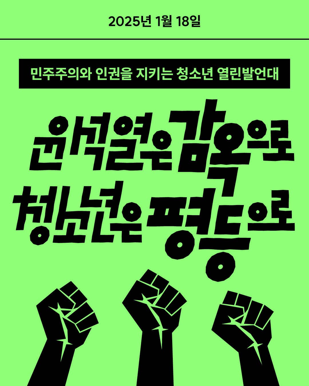 2025년 1월 18일 민주주의와 인권을 지키는 청소년 열린발언대 "윤석열은 감옥으로, 청소년은 평등으...