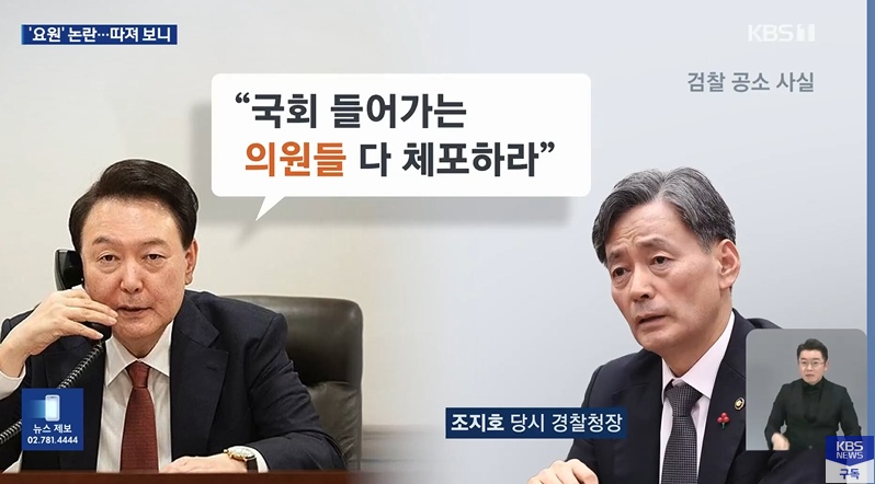 윤석열이 조지호 경찰청장에게 "국회에 들어가는 의원들 다 체포하라"고 지시.