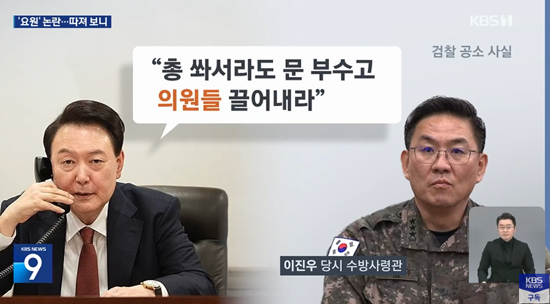 지난 12·3 계엄 당시 윤석열 대통령이 '총을 쏴서라도 문을 부수고 끌어내라'는 지시를 했다고 검찰이 밝혔습니다.
