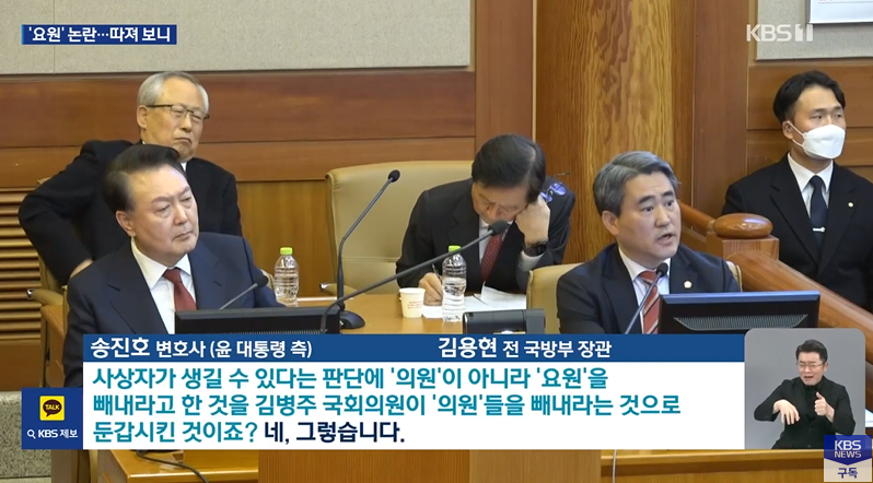 (1) 윤석열, 변호사 송진호, 김용현을 비판할 때, ‘요원’ 대 ‘국회의원’을 대립시키는 것은 곽종근의 단어사용을 정확히 반영하는 것은 아니다.