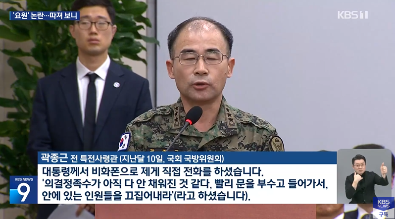곽종근 "국회의사당 시설을 확보하고, 인원을 통제하라는 지시를 받았다"