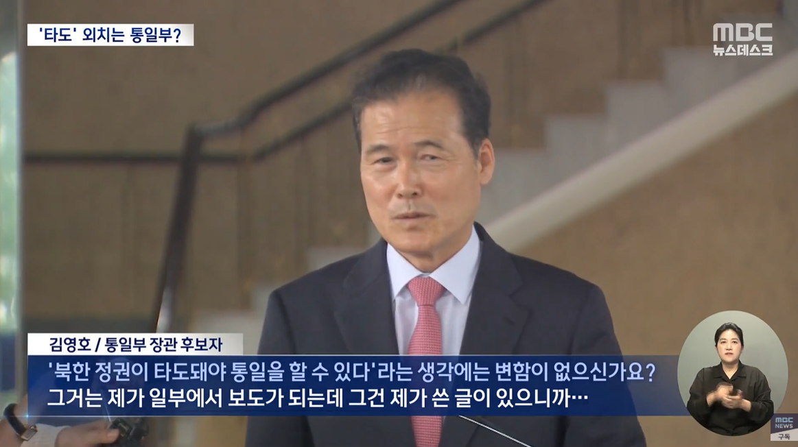 "김정은 정권 타도" 김영호 교수 통일부 수장 걸맞나?