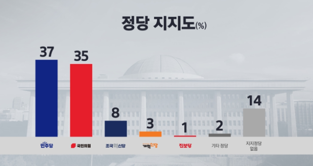 ■ '국민의힘 35%·더불어민주당 37%' 오차 범위 내 접전