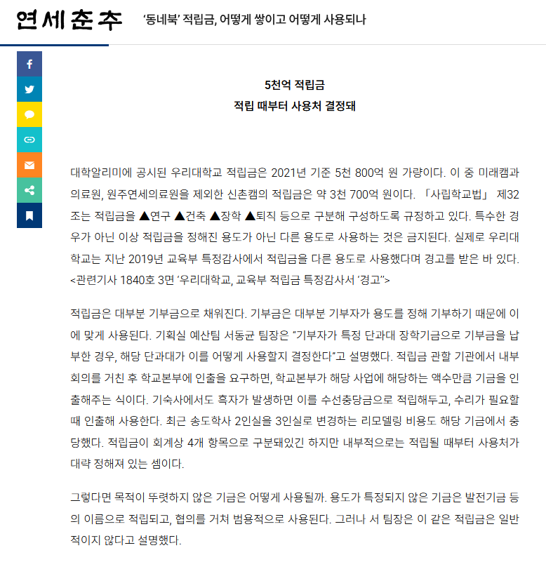 (5) 유명 사립대학들의 '적립금' 공개, 사립대학생들에게 등록금 지원과 장학금 증액 요구.