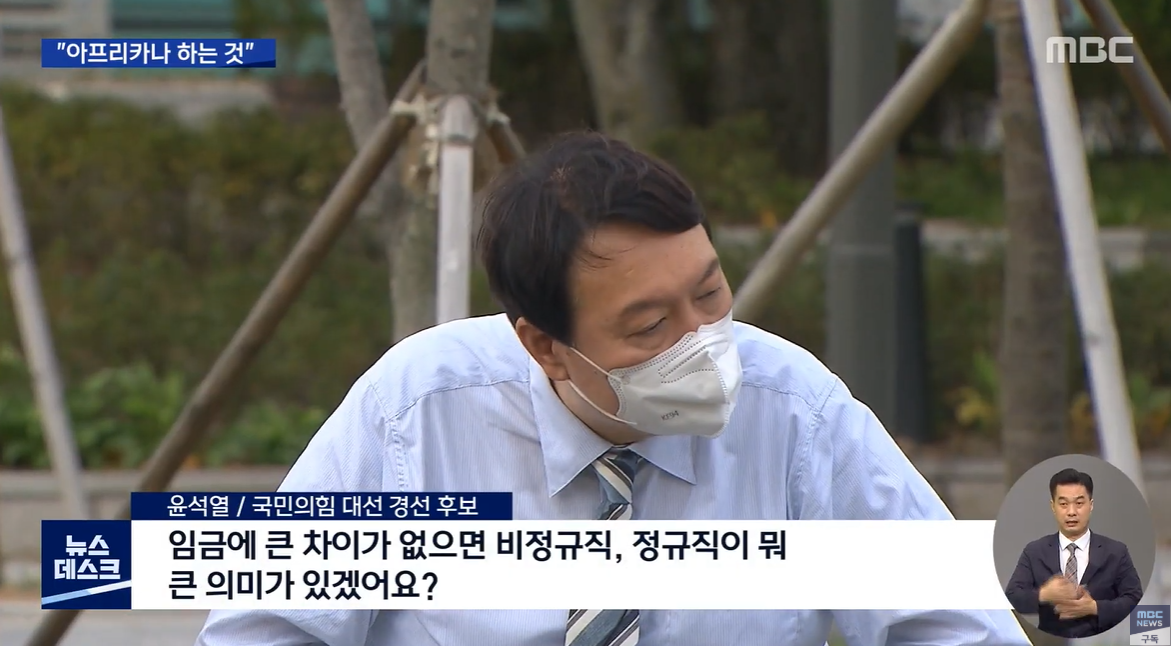 윤 후보는 또 해고를 함부로 해선 안된다면서도 정규직, 비정규직의 차이를 크게 두는 건 의미없다고도 강조했습니다.