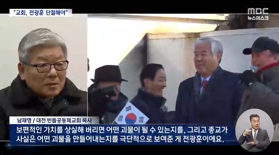 목사라는 호칭을 내걸고 극우 세력의 구심점 노릇을 하고 있는 전광훈 씨에 대해, 개신교계 내부에서도 우려하는 사람들이 있습니다. 수년 간 전 목사를 비판하며 법적 다툼...