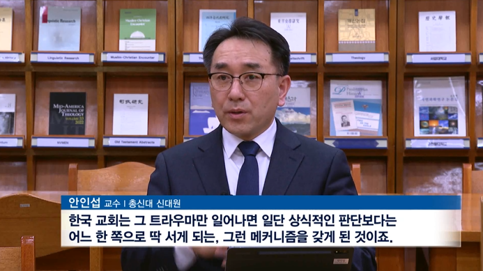 [앵커] 이처럼 '12.3 내란사태' 이후 연일 이어지고 있는 극우 기독교계의 정치적 행보는 한국교회의 현실과 기독교 신앙의 본질을 돌아보게 하고 있습니다. 신학자와 목회자들은 "분단의 아픔과