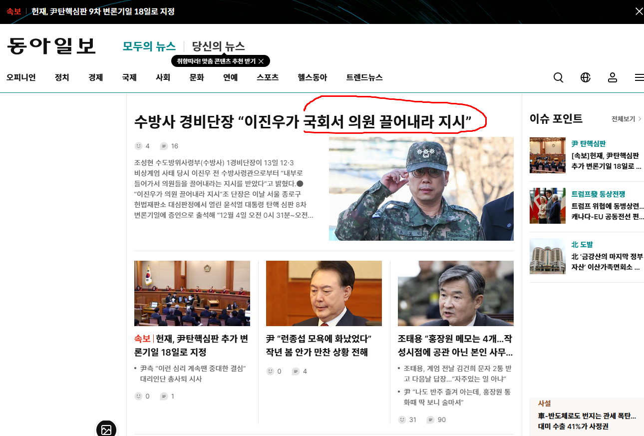 조성현 수방사 경비단장, 이진우 사령관이 "내부로 들어가서 의원들을 끌어내라"는 명령을 내렸다.
