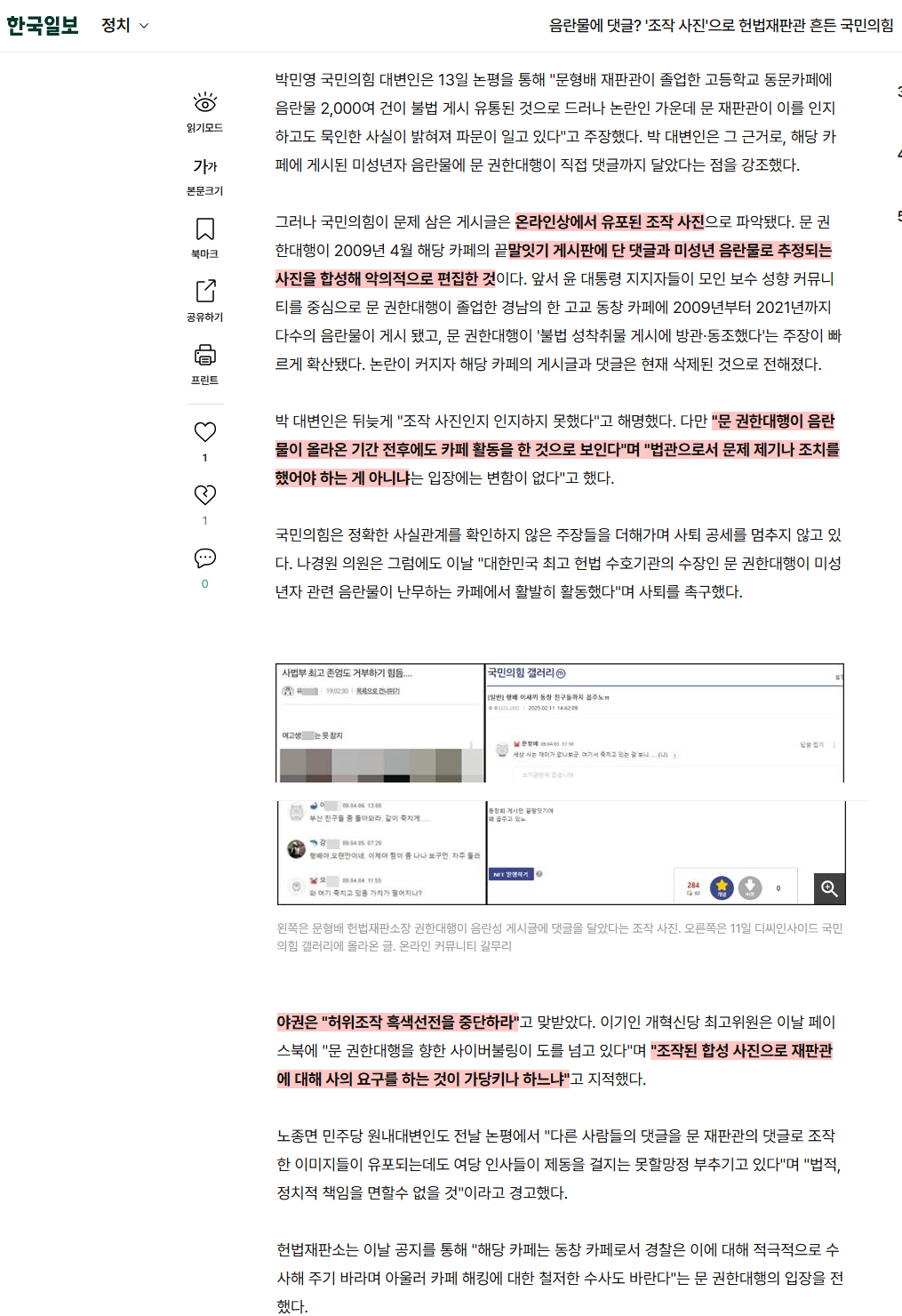 음란물에 댓글? '조작 사진'으로 헌법재판관 흔든 국민의힘 | 한국일보