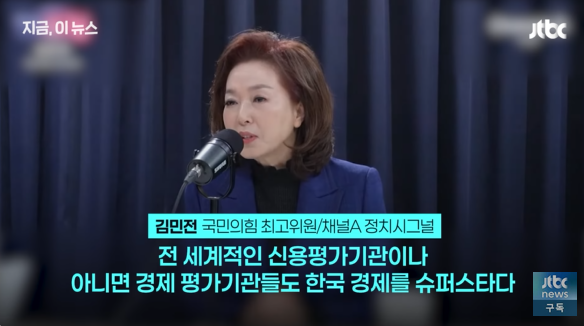 2024년 11월 11일 경, ‘미국 의회’로 박사를 받은 김민전이 윤석열이 경제수퍼스타라고 칭송했다. 세계가 인정하는 경제수퍼스타가 한달도 채 못되어, 자해적 자기파괴적 ‘계엄령’ 선포하고, 내란죄로 체포당했는가?