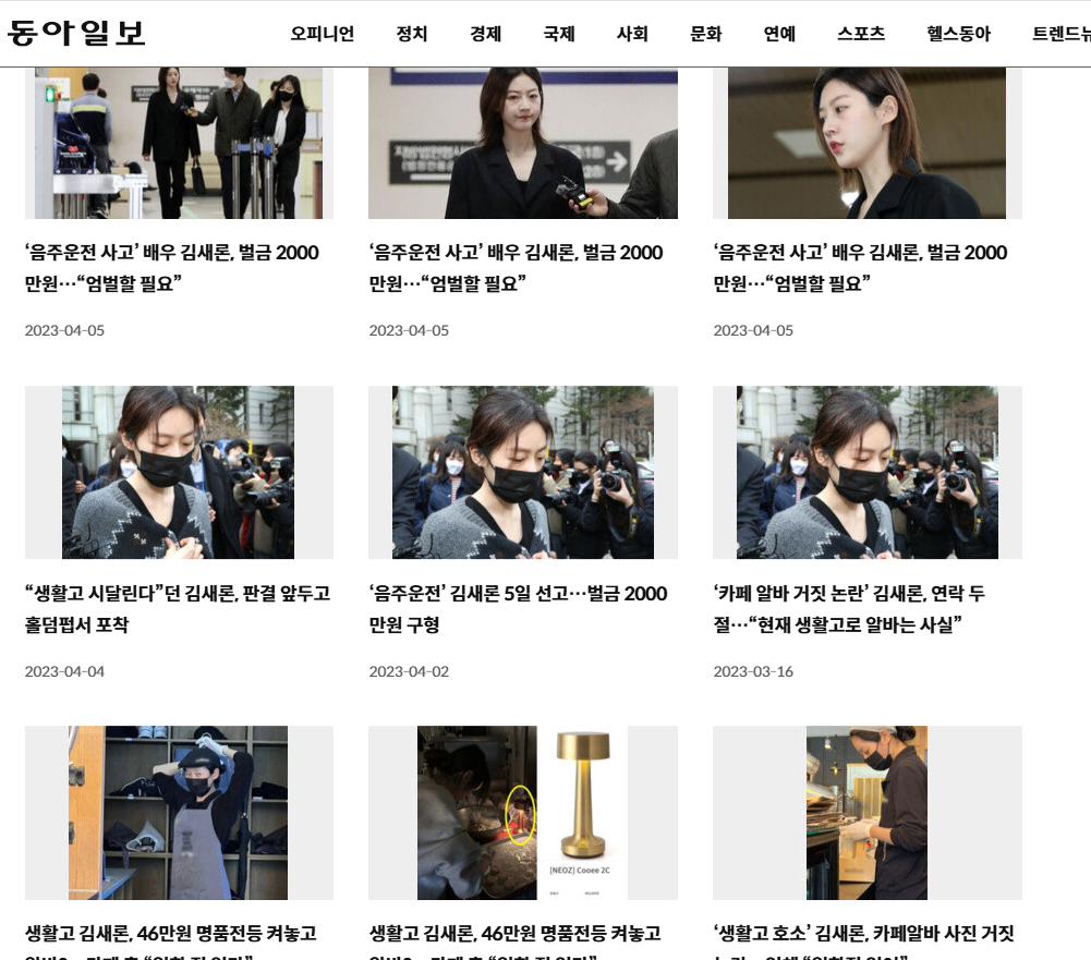 2. 조선일보, 동아일보, 세계일보 등 거의 모든 언론과 유튜브는 김새론 앞에 '음주운전'이라는 단어를 붙였고,