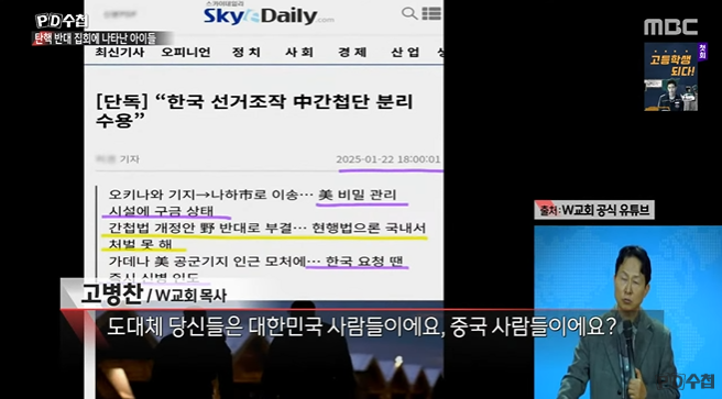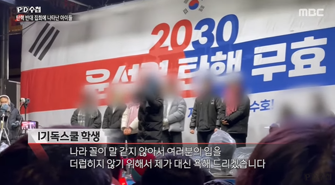 출처. PD수첩] 광장의 음모론 1부 태극기 든 ’애국청년‘ - 2025년 2월 18일 밤 10시 20분