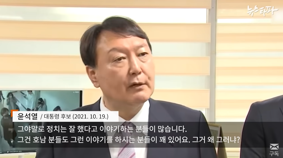 윤석열의 전두환 칭찬 발언에 대해서는 이재명은 '광주영령과 호남인 능욕에 대해서 사과하라'고 윤을 비난했다.